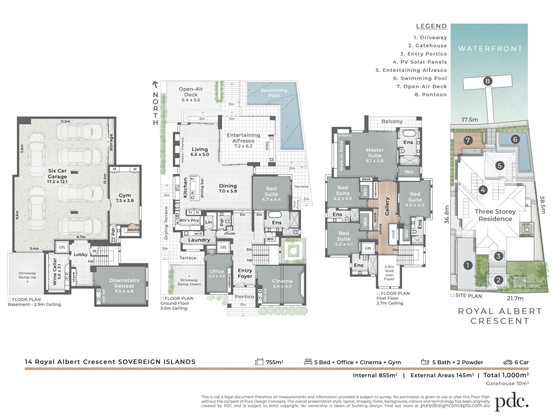 Expect the basement level to impress too. Featuring a 6 - 10 car garage, a home gym with sauna, kids media room and a custom cellar, it promises something for all the family. While you're here, select one of the approx. 600 bottles from this superior subterranean wine room and head up to the alfresco terrace to entertain in style. A wraparound pool also sparkles waterside, or unmoor your up to 50ft vessel from the pontoon and enjoy bridge free access to the Broadwater.