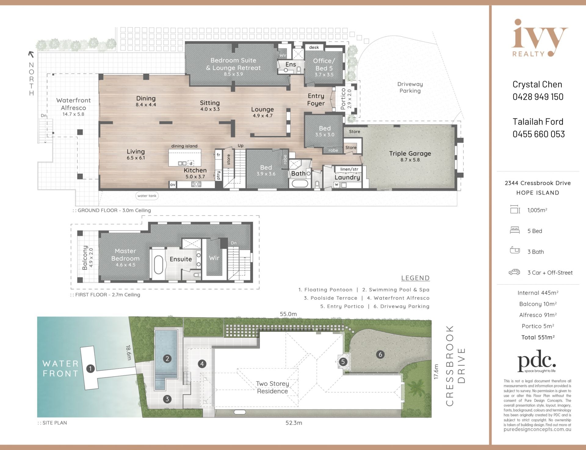 • Upstairs penthouse master suite with ensuite spa, walk-in wardrobe and waterfront balcony overlooking the river