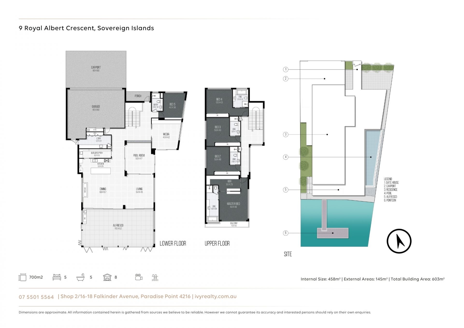 - Private media room or home office space + pool/games room with sliding doors access to the pool.